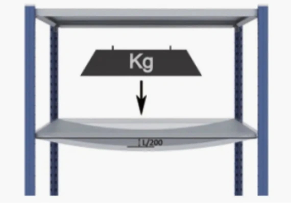 Para el test de capacidad máxima, debe sobrecargarse la estantería, y aplicarse una fuerza en el extremo superior de la estantería, para comprobar la deformación de los puntales.