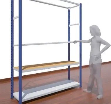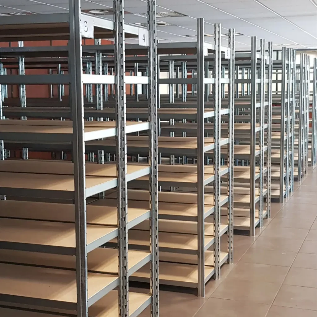 La estantería para cargas ligeras con tablero aglomerado es un modelo que destaca por su atractivo diseño y un sistema ideal para equipar espacios de almacenajes de cargas manuales como pueden ser: trasteros, garajes, oficinas o incluso para puntos de venta al público. Soporta una carga hasta 350 kg por nivel. Ofrece dos tipos de acabados: tablero aglomerado y estante metálico.