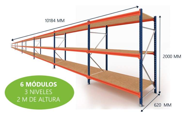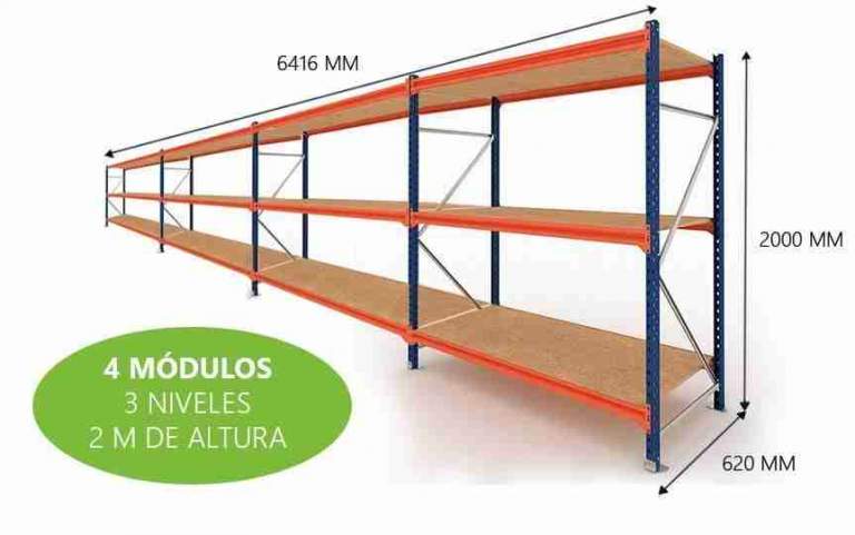 - Carga por nivel y por módulo: Máximo peso que podemos colocar en cada caso.